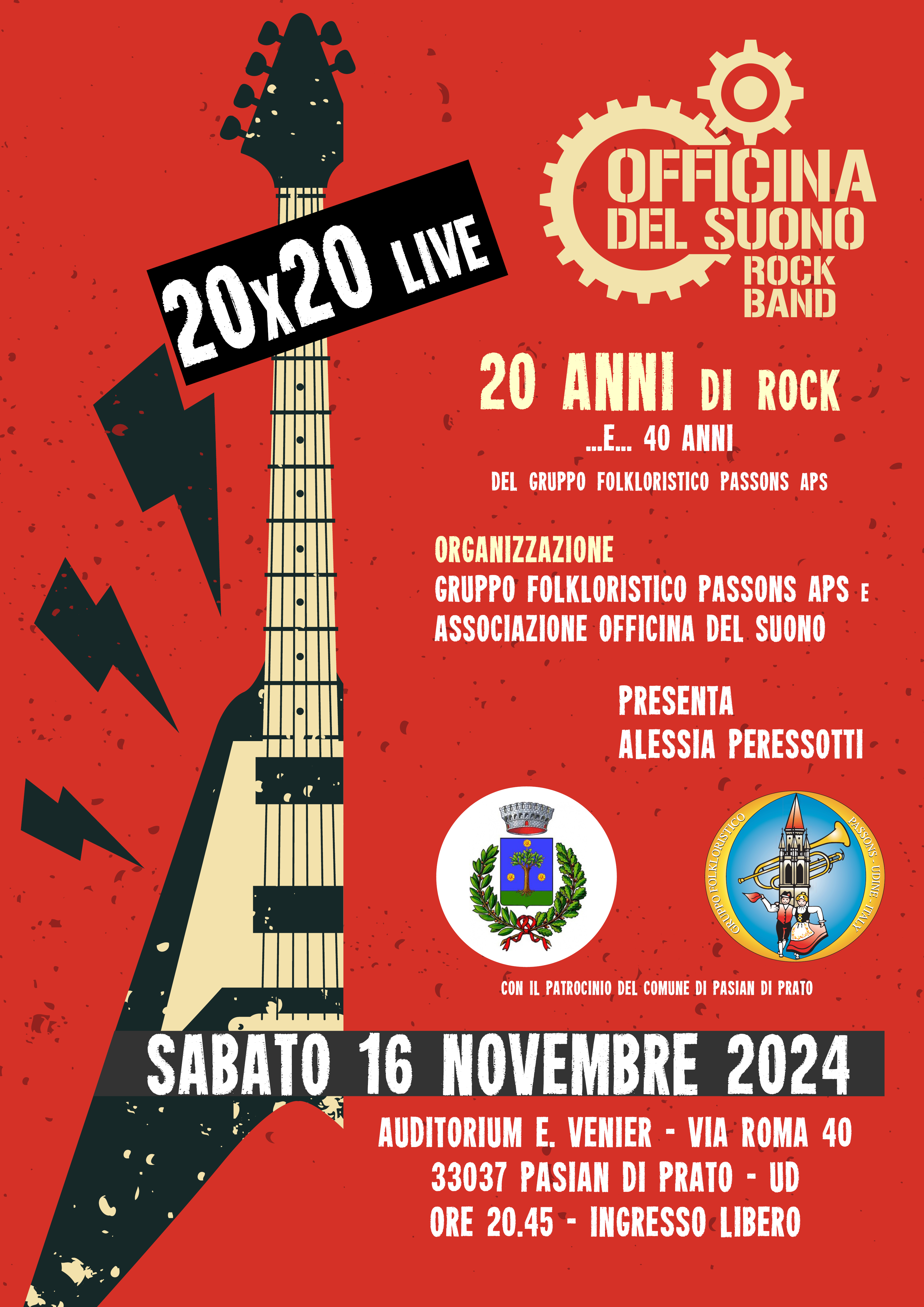 Rivedremo in azione la band il giorno 16 novembre 2024 presso l’auditorium “Venier” in via Roma 40 a Pasian di Prato (UD) con inizio alle ore 20.45 per uno spettacolo “a tutto rock” per i vent’anni di fondazione in co-organizzazione con il Gruppo Folkloristico Passons A.P.S., associazione presieduta da Marco Cuttini che quest’anno celebra 40 anni di attività a servizio del territorio. La serata è inoltre patrocinata dal Comune di Pasian di Prato, sempre attento alle proposte provenienti dalle realtà culturali locali. Il concerto sarà in ricordo dell'amico Silvano "Nano" RUGORA.